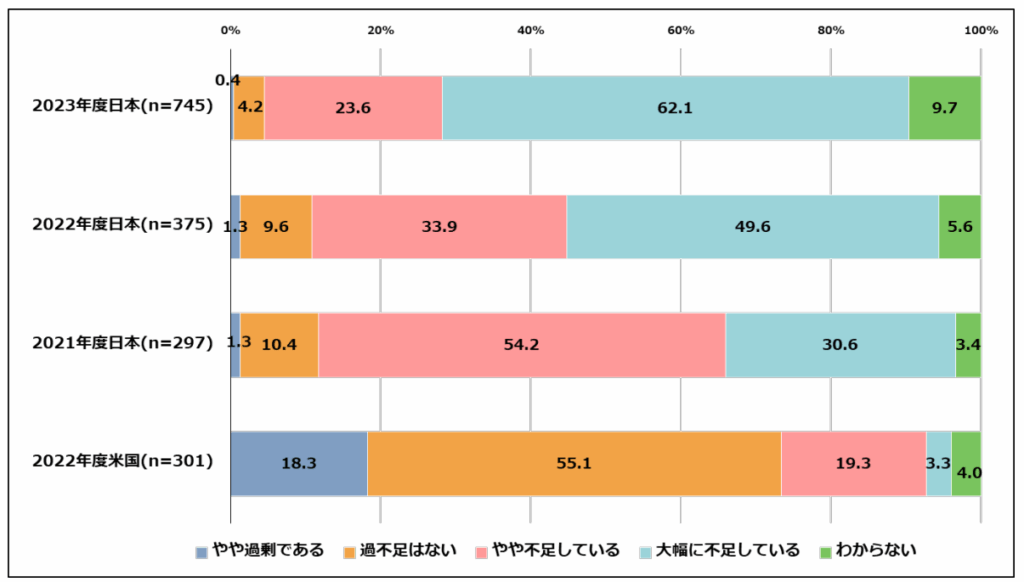 生成AIの普及にともない、情報漏洩や著作権侵害といった問題が顕在化しています。IPA「DX動向2024」によると、企業の78 %が“AIリスク対策の知識不足”を課題視しており、従業員のAIリテラシーの向上は急務です。