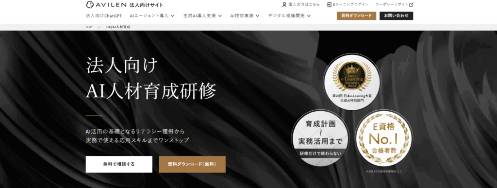 株式会社AVILENは、AI活用を推進する企業向けに、リテラシー教育からAI実装支援まで幅広い研修サービスを提供しています。全社員向けの基礎研修から、ビジネス層・エンジニア層それぞれに適した専門カリキュラムまで用意されており、課題や人材レベルに応じて柔軟に設計可能です。