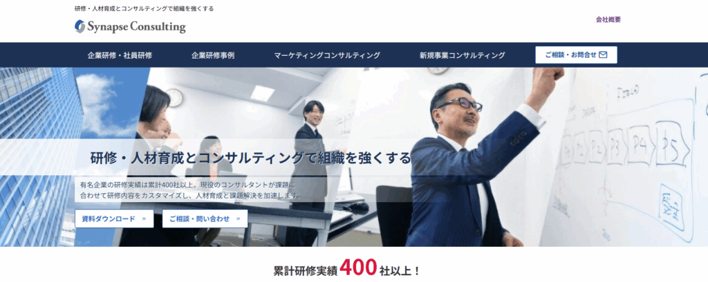 株式会社シナプスは、DX・AI・データ分析分野に特化した実践型研修を提供しており、累計実績400社以上を誇ります。法人向け人材育成とコンサルティングに強みを持ち、味の素や花王などの大手企業でも多数導入されています。