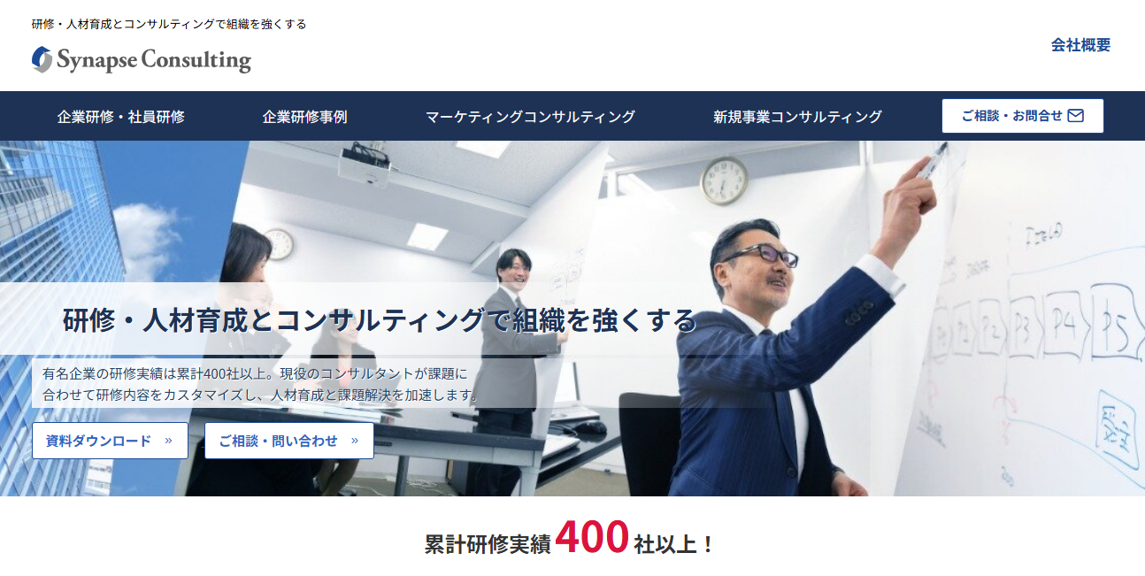株式会社シナプスは、DX・AI・データ分析分野に特化した実践型研修を提供しており、累計実績400社以上を誇ります。法人向け人材育成とコンサルティングに強みを持ち、味の素や花王などの大手企業でも多数導入されています。