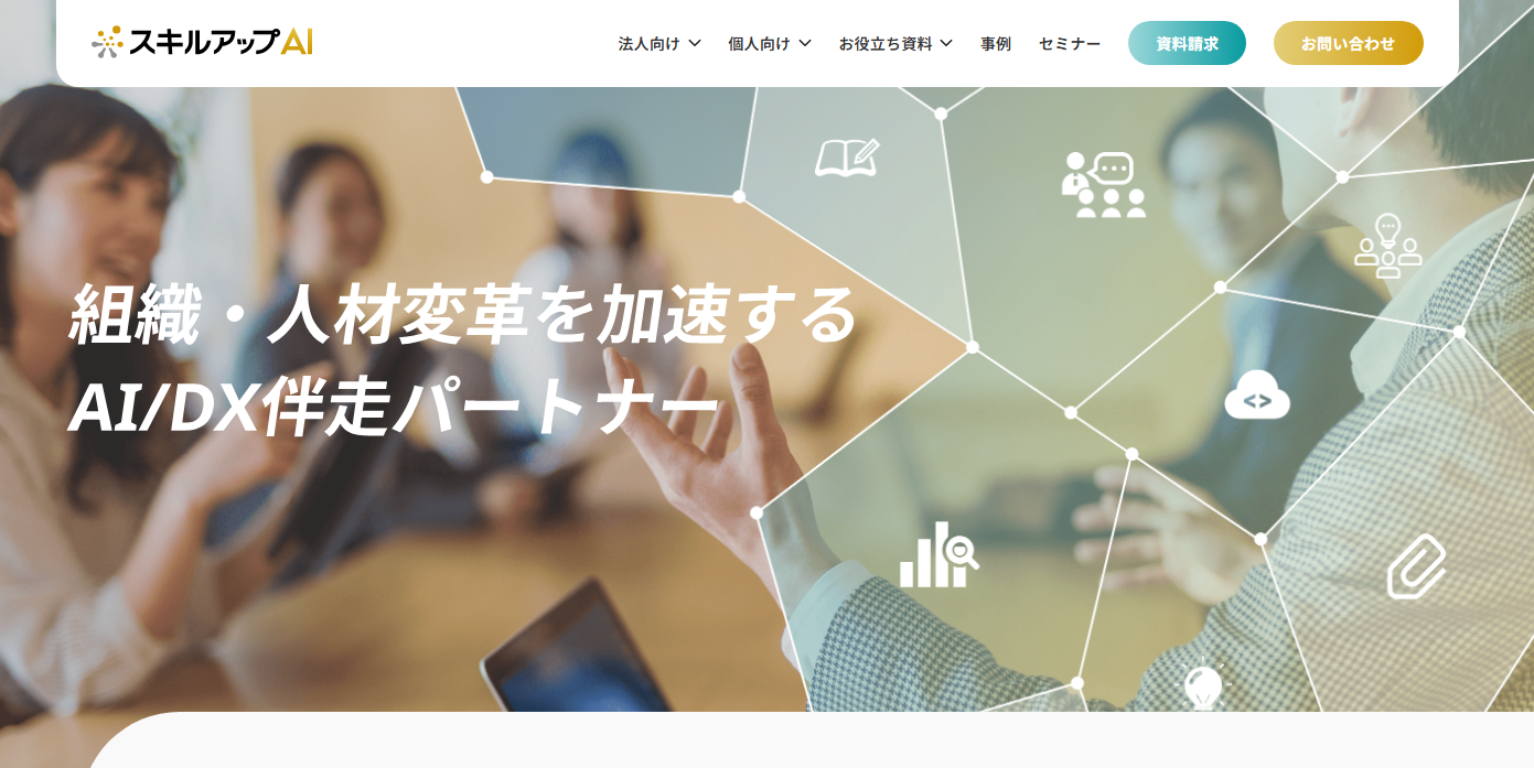 株式会社スキルアップNeXtが展開する「スキルアップAI」は、法人向けにAI・DX人材を育成するための研修サービスを提供しています。